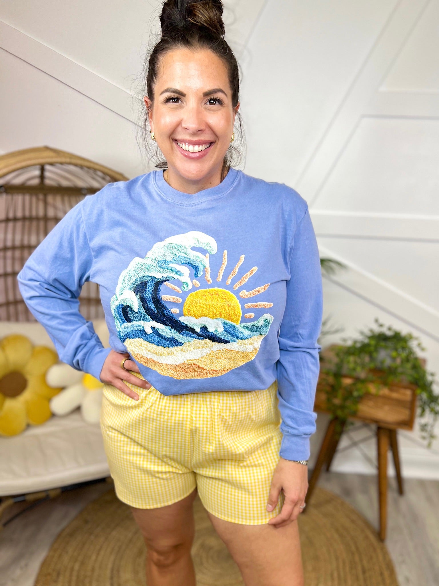 Wave Faux Chenille Graphic Long Sleeve
